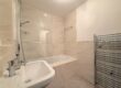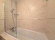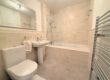 Modern matching 3 piece bathroom suite with shower over the bath. Heated towel rail and floor to ceiling tiles.