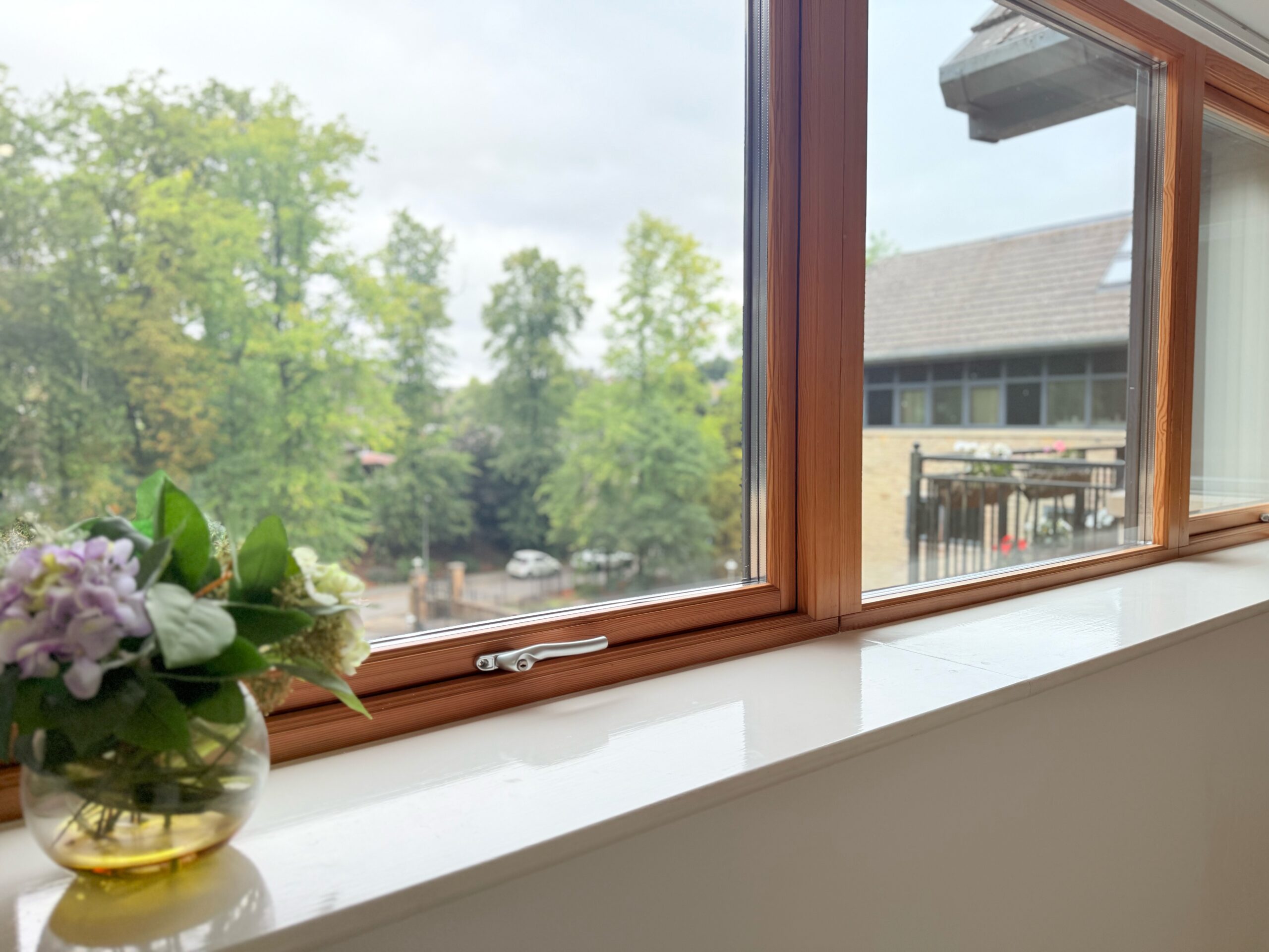 Spacious lounge room with large triple glazed windows.