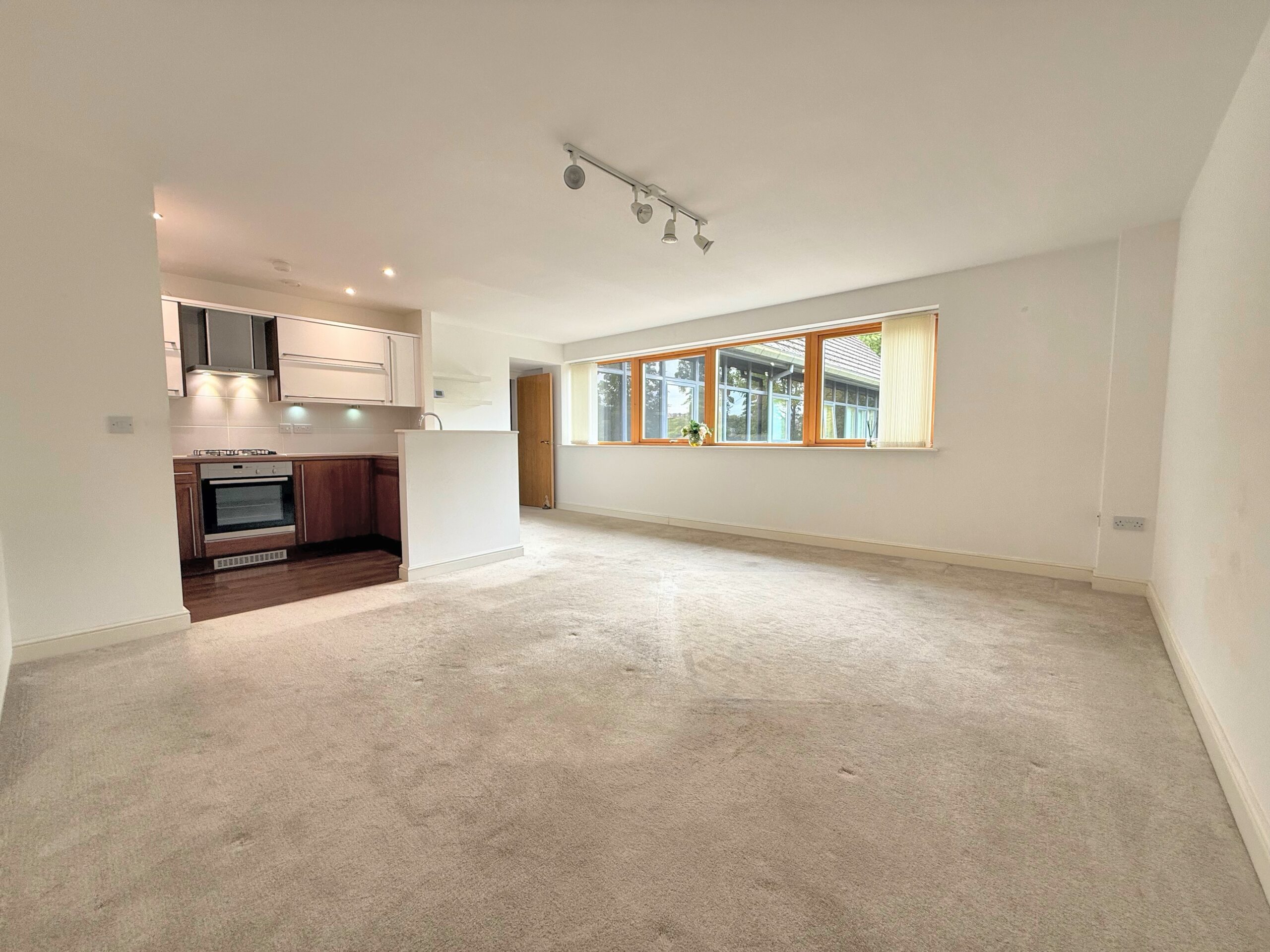 Inside, you’ll find a bright and spacious lounge with lots of front-facing windows, a well-appointed fitted kitchen with white gloss units, a generous double bedroom, and a modern bathroom. The neutral décor throughout ensures it is move-in ready, while still giving buyers the opportunity to add their own style.