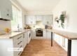 Kitchen – 4.32m x 2.59m – Modern fitted kitchen with wall and base units, complementary work surfaces, integrated electric oven, four-ring gas hob with extractor, plumbing for washing machine, and access to the rear garden.