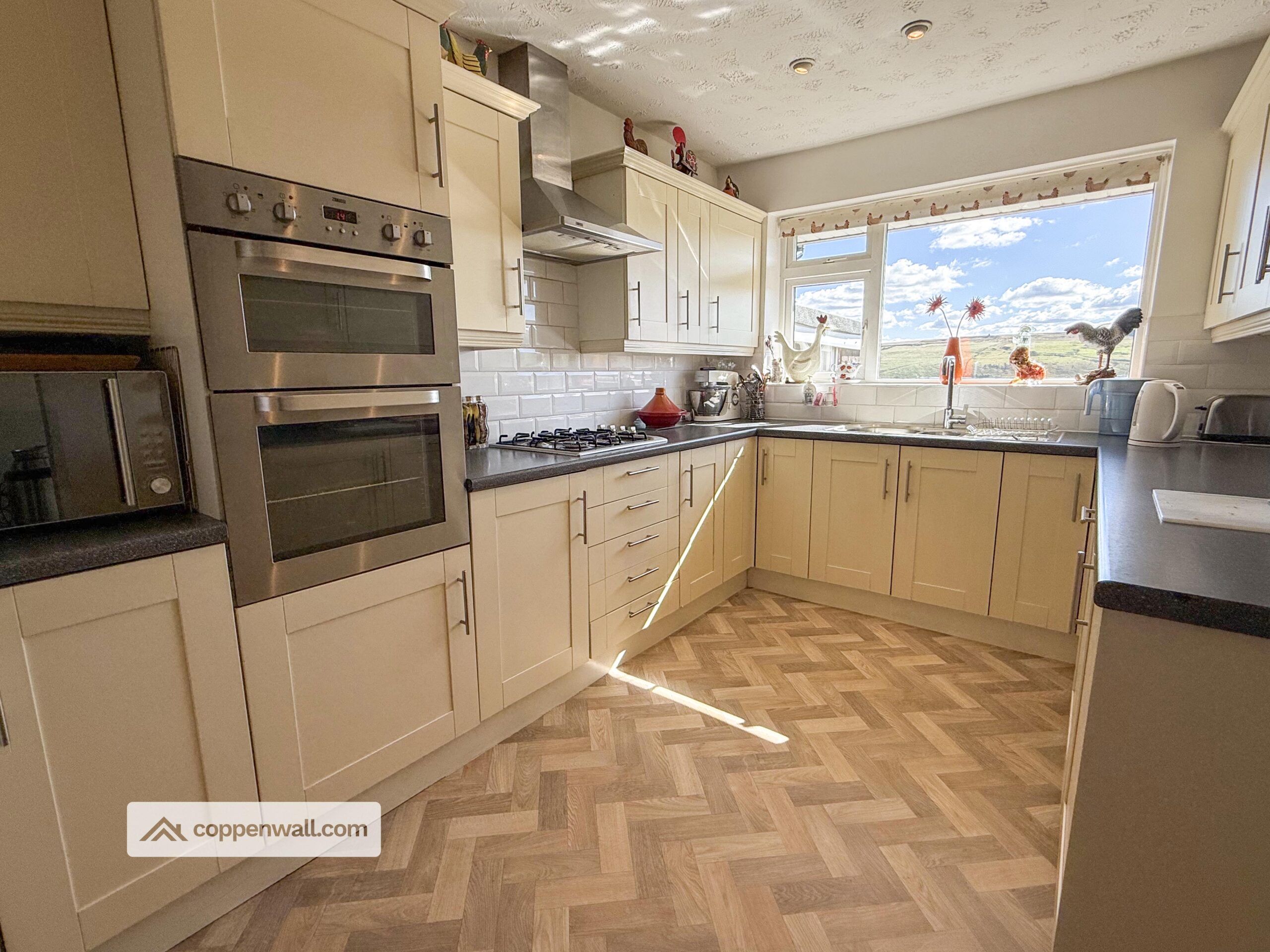 Built in appliances such as Dishwasher, double oven, hob and fridge. Stunning views.
