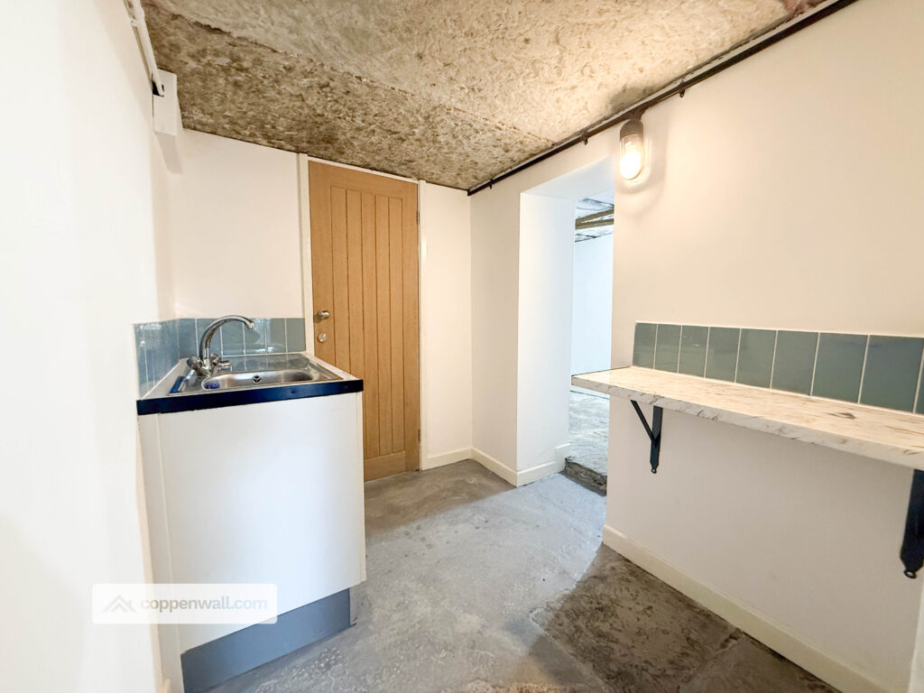 Fitted with work surfaces, plumbing access, and useful storage. Offers practical separation from the main living areas, with potential to convert or extend into bath/utility facilities if required.