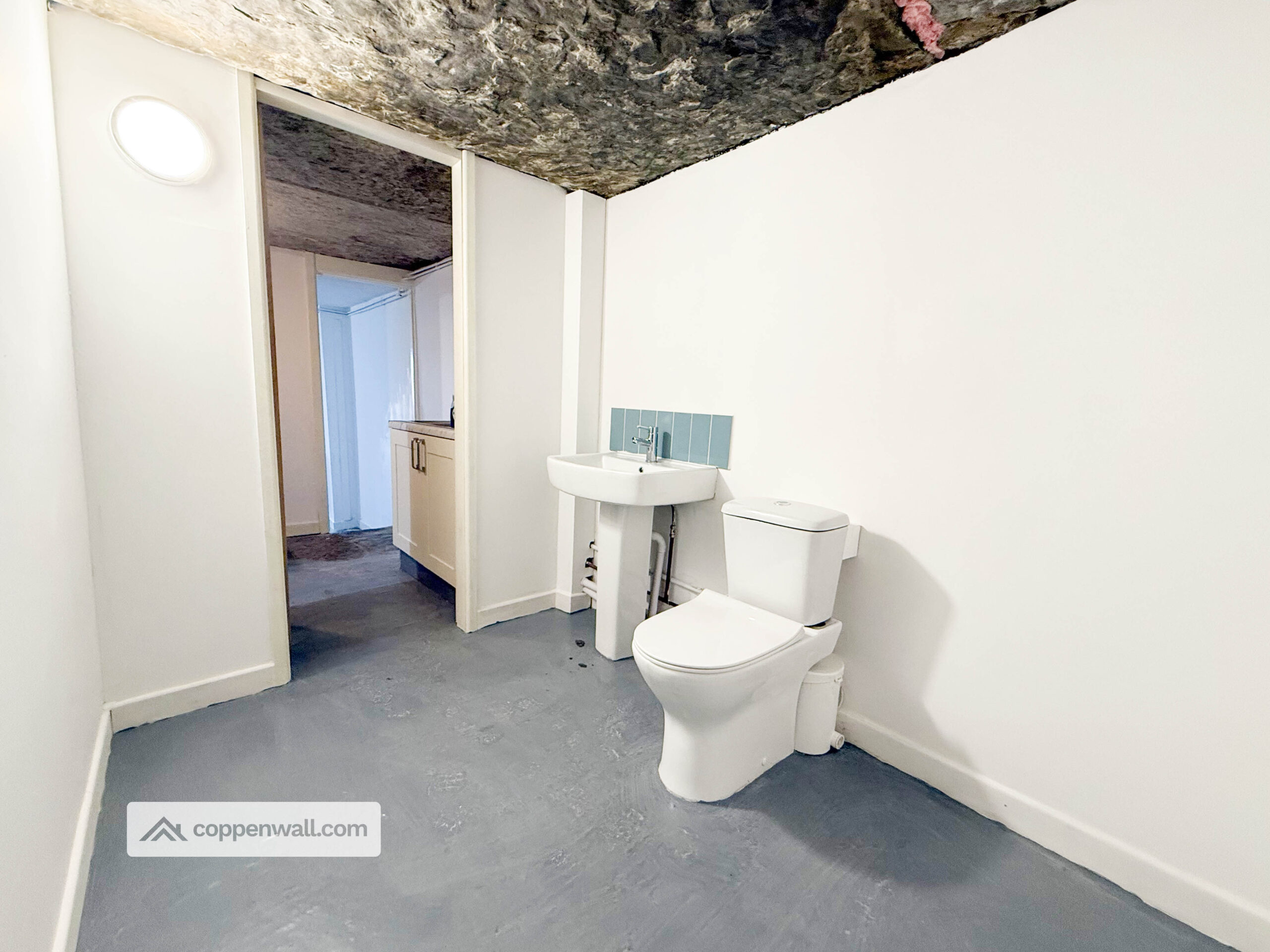 Fitted with work surfaces, plumbing access, and useful storage. Offers practical separation from the main living areas, with potential to convert or extend into bath/utility facilities if required.