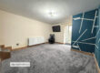 A stunning open-plan kitchen/diner fitted with dark shaker-style cabinets, tiled splashbacks, and integrated oven, hob, and extractor. There’s ample space for a family dining area, complemented by patterned tiled flooring and rear garden access through a uPVC door.