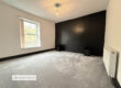 A generous double bedroom with a sleek black feature wall, ample floor space, and a front-facing window allowing natural light to fill the room.