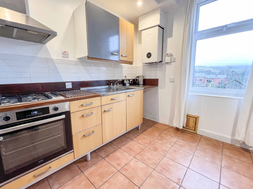 Built in single oven and 4 ring gas hob, plenty of cupboard space, and a relatively new and serviced Worcester boiler with remote thermostat.