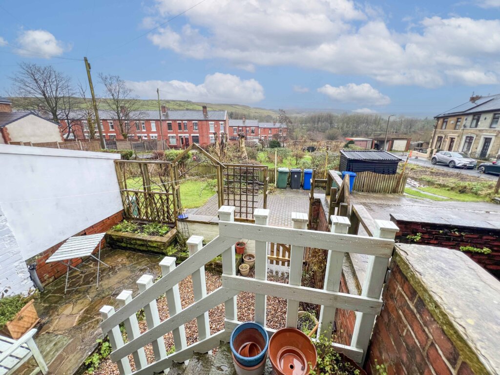Enclosed rear yard and parking space with views over to lee mill quarry and neighbouring countryside