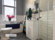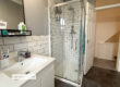 UPVC double glazed frosted window, direct feed shower unit, vanity top wash basin, twin flush WC, panelled bath, part tiled elevations and central heating radiator.