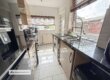 Quartz marble worktops and stainless steel inset sink. Freestanding appliances with access to the rear patio / garden area.