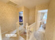 Spacious landing area with a white spindle balustrade staircase, loft access.