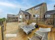 To the rear, a landscaped garden enjoys two-tier decking areas, lawned sections, and beautiful open countryside views perfect for entertaining or relaxing outdoors. The front garden features mature planting and exterior lighting, enhancing the home’s impressive kerb appeal.