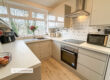 Modern kitchen with built-in electric oven and hob, views out to the rear of the property.