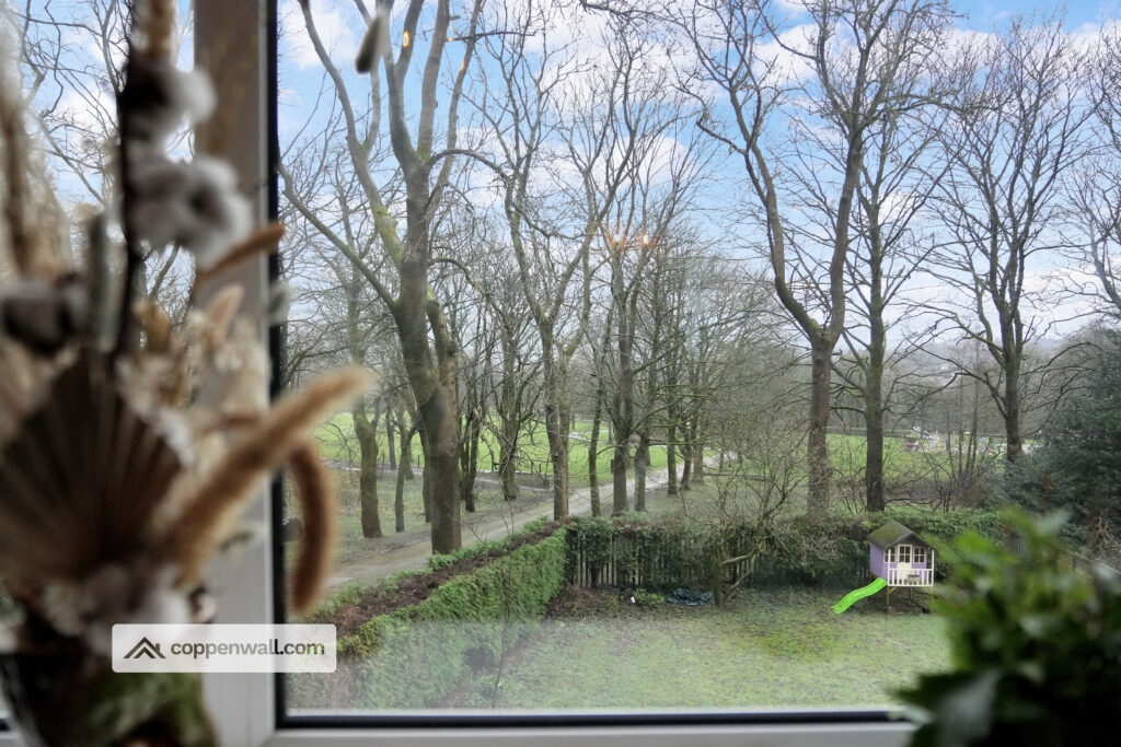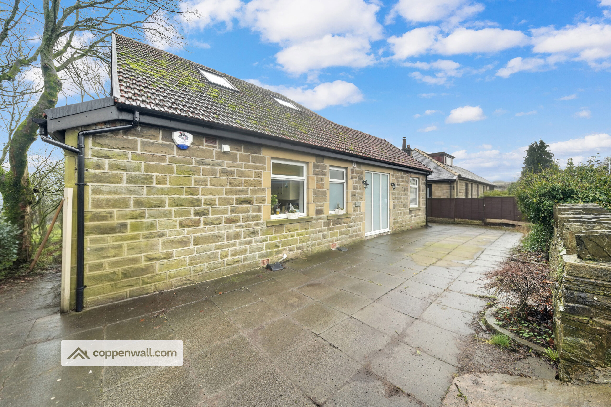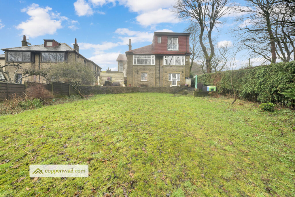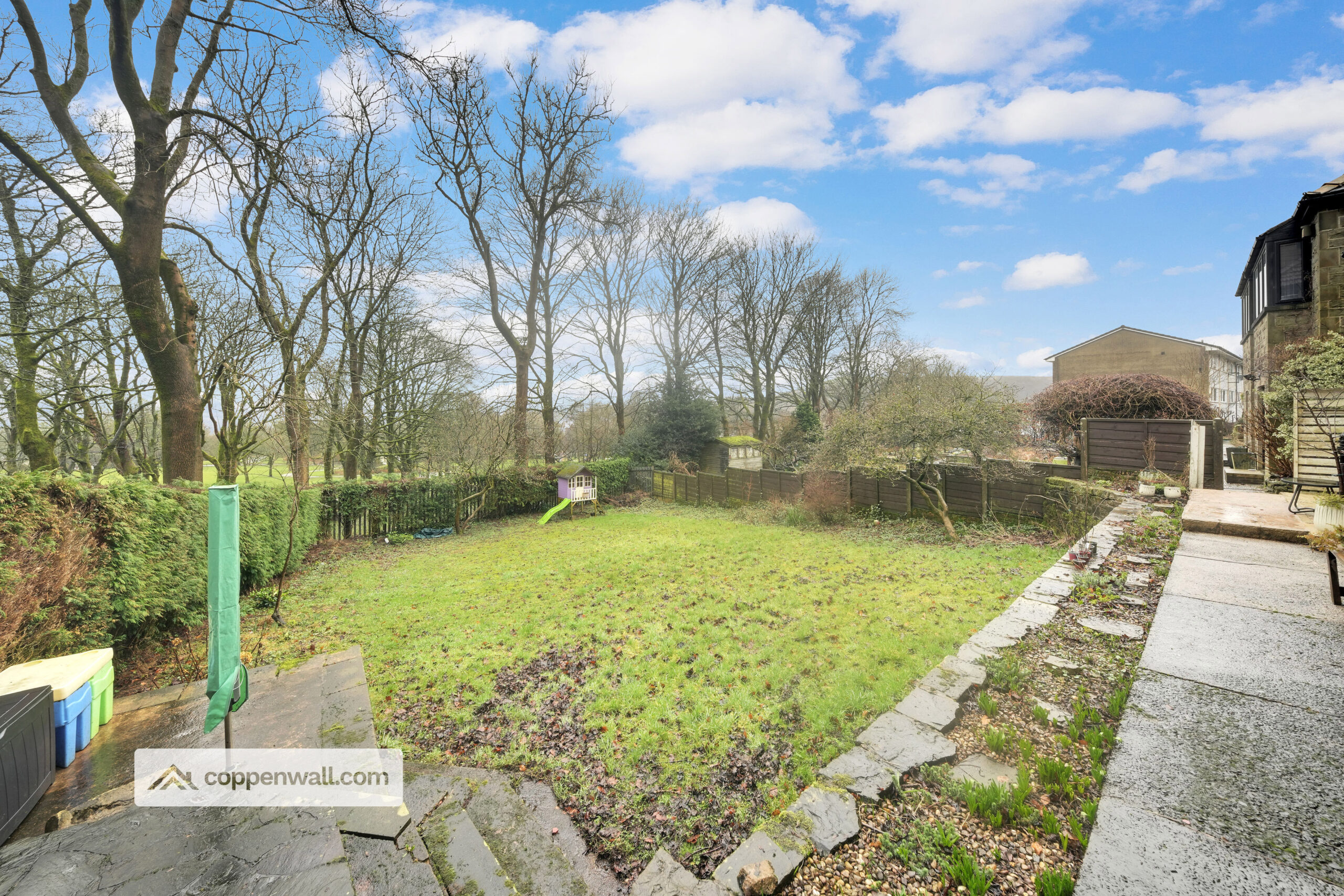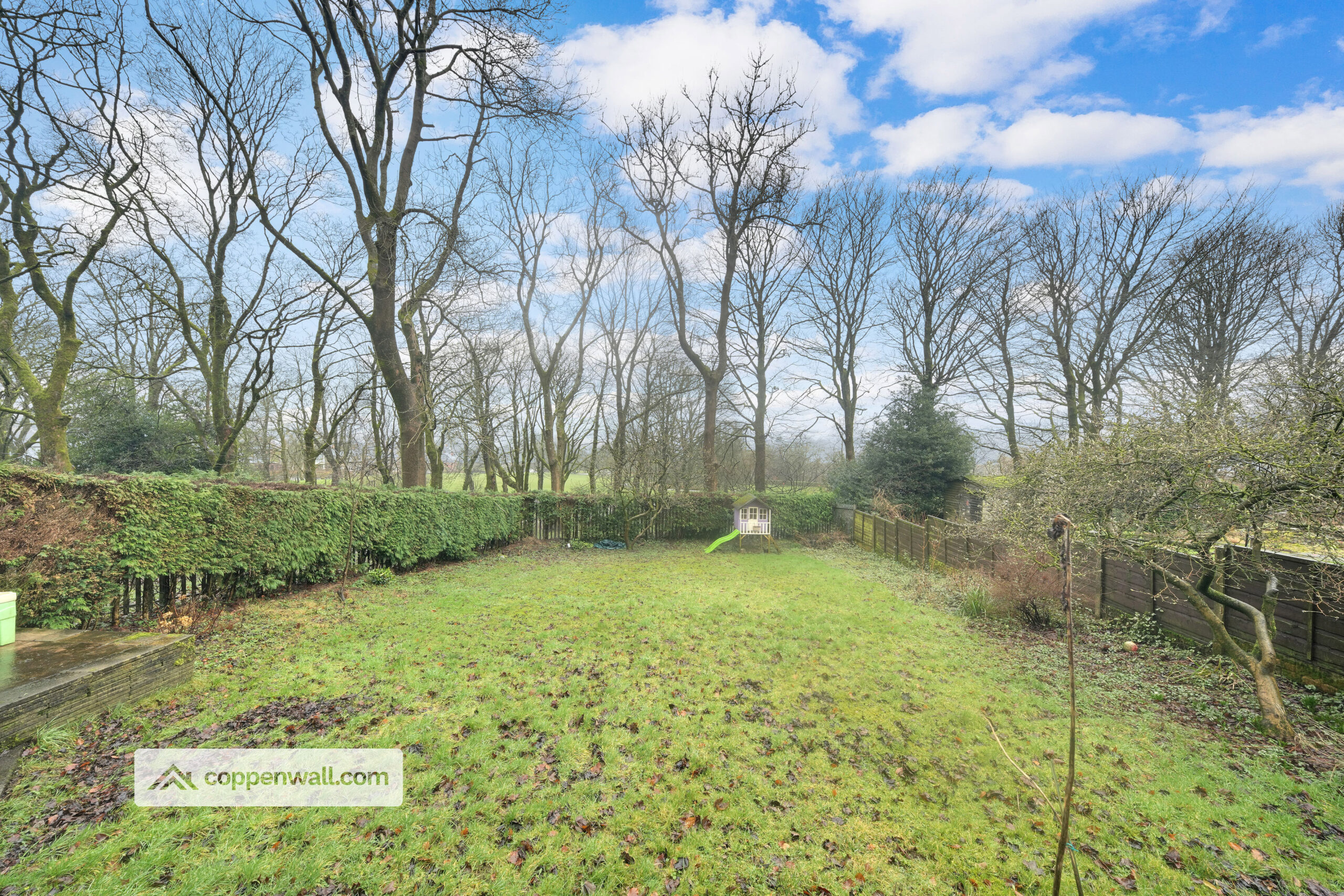 To the rear, the garden is mainly laid to lawn with a patio seating area, mature shrubs and planted borders, enjoying open elevated views across Edgeside Park and the surrounding countryside, providing a peaceful and scenic outdoor setting.