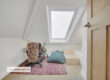 A bright and welcoming hallway with a large feature window allowing abundant natural light. Finished with planed wood flooring, it creates a warm and inviting atmosphere while providing access to the main living areas, bedroom three, and both the lower and first floors.