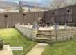Front garden, driveway, garage with lights and power, side access, outdoor tap, rear garden and raised stone patio.