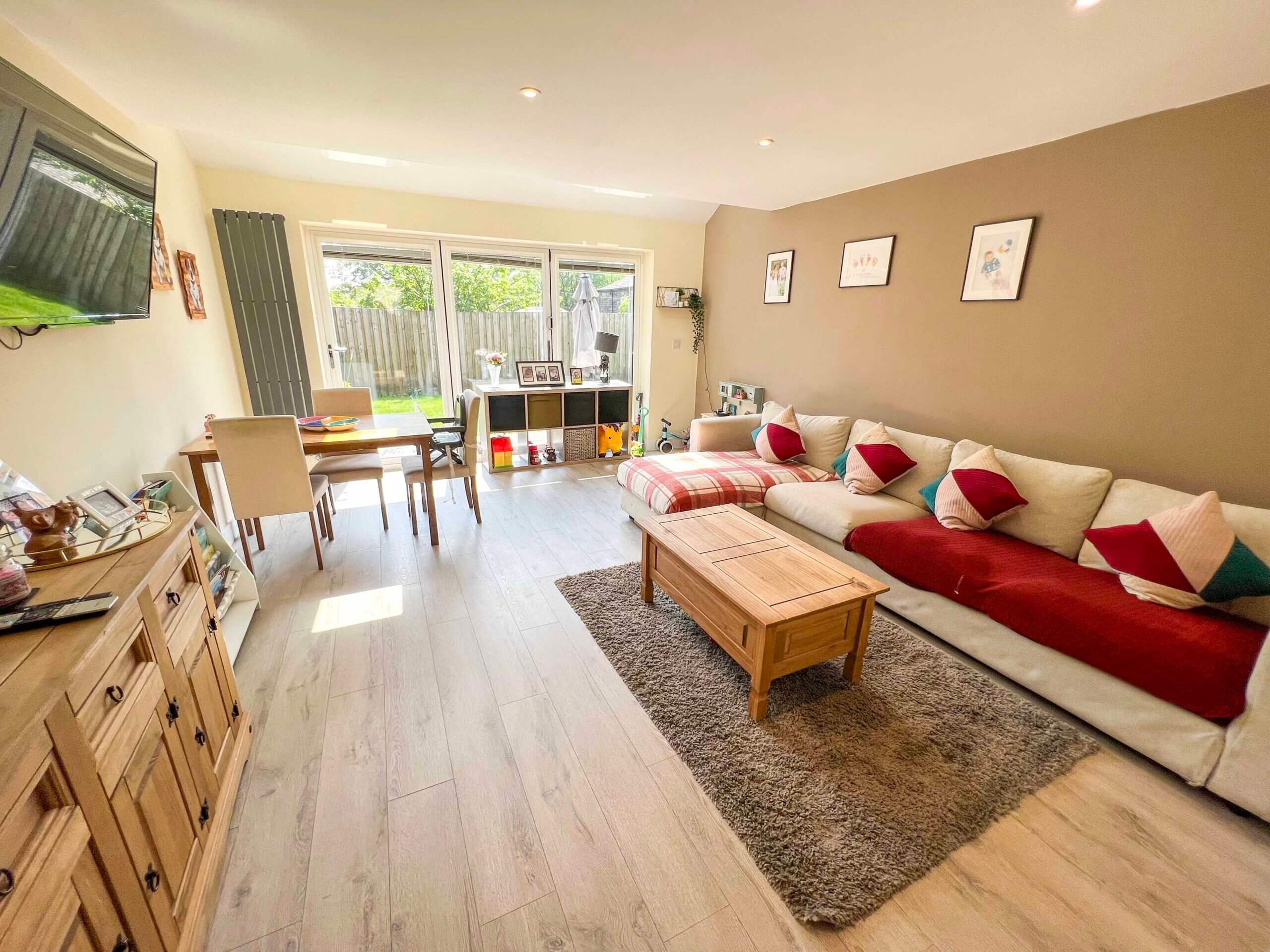 Lovely open plan lounge with bi-fold doors that lead out into the enclosed rear garden.