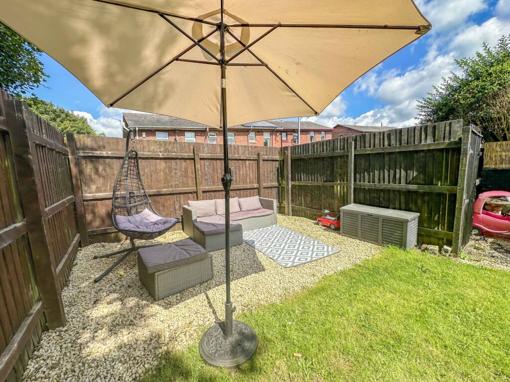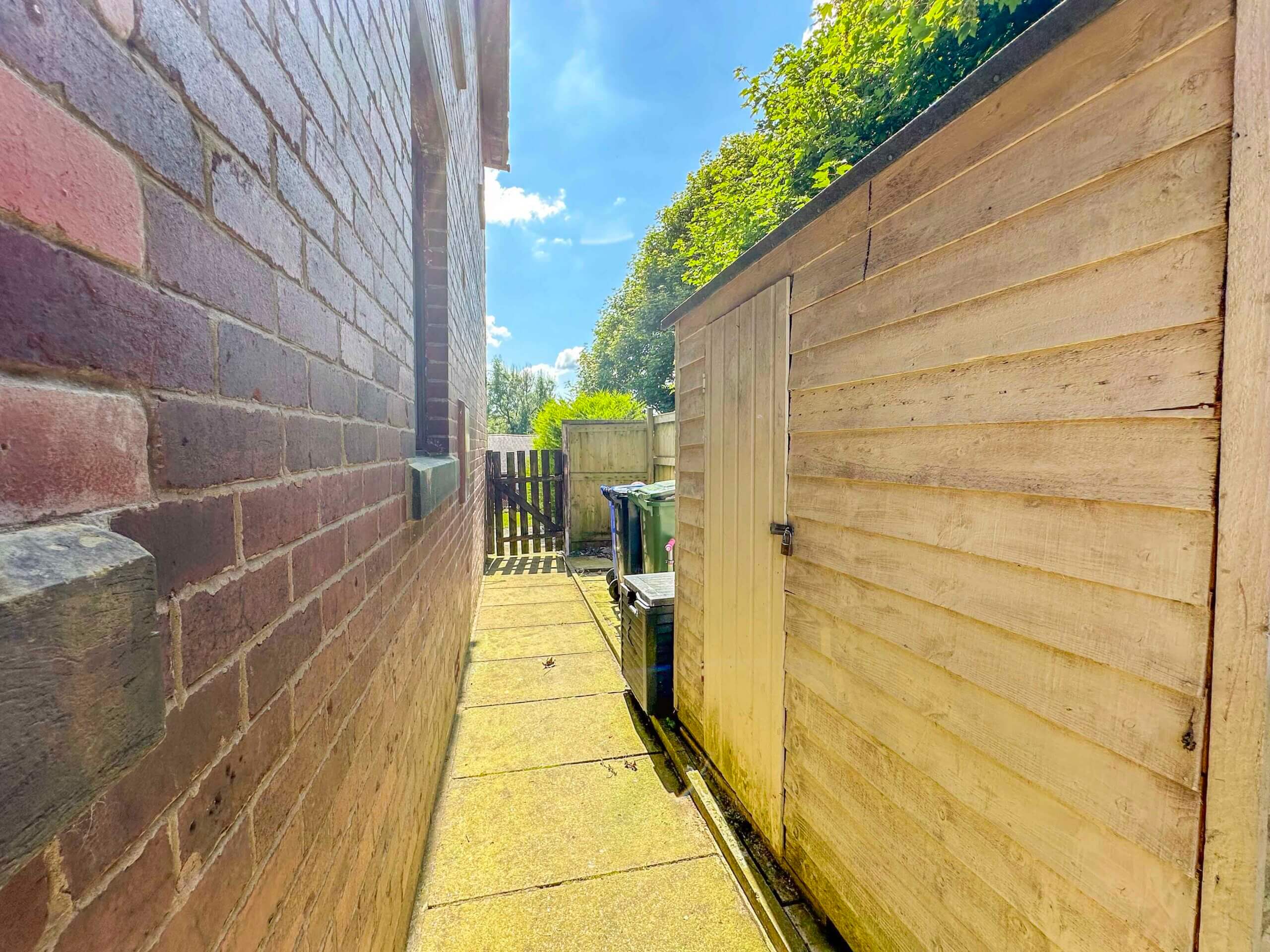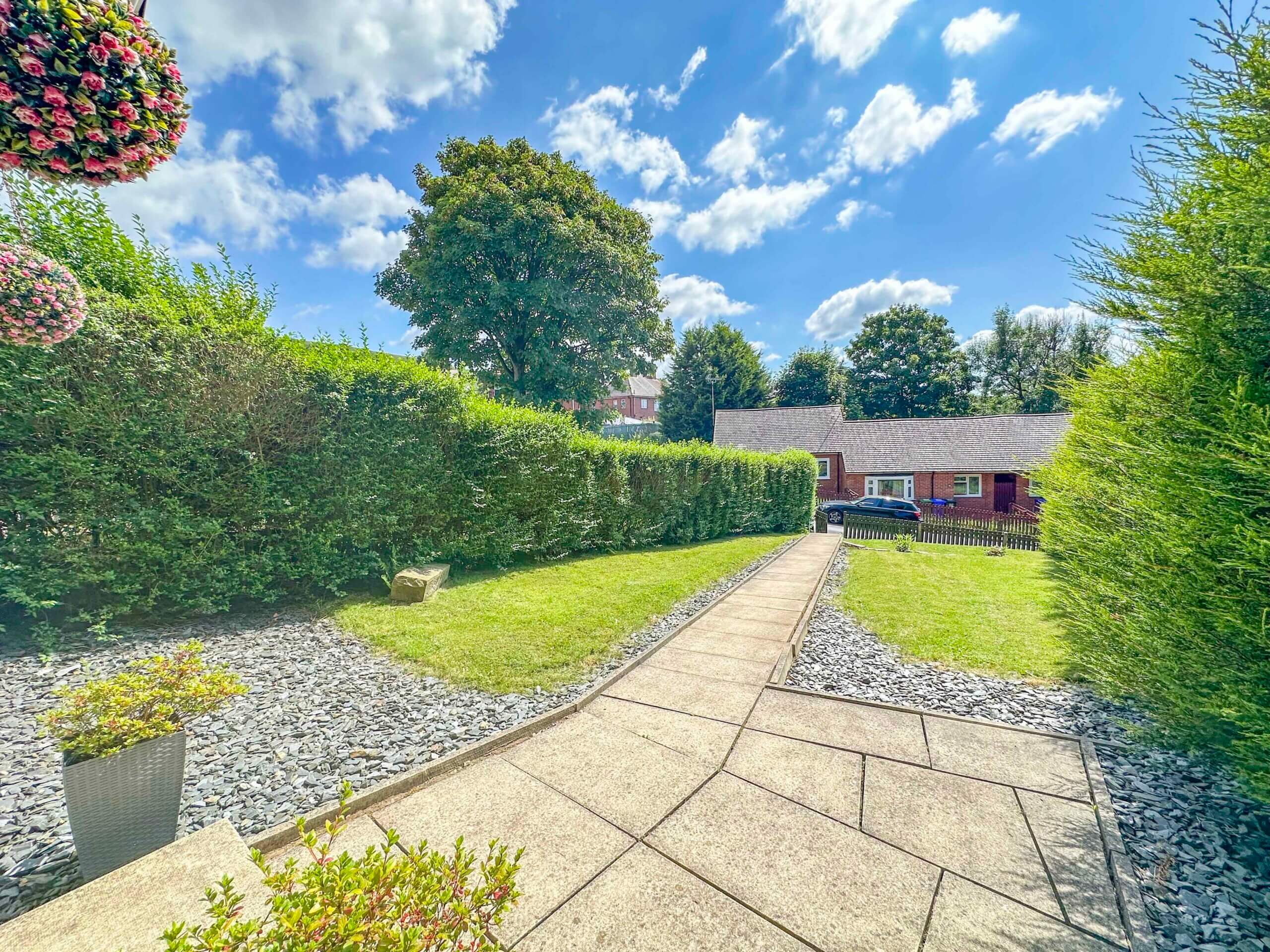 Externally, to the front, is a lovely garden, with an area laid to lawn, mature hedges offering privacy, and access to the side garden. To the side is a flagged walkway, through to the rear garden, and features a timber shed, and an area to store bins. To the rear is a flagged patio area, leading to an area laid to lawn, then a stone-chip patio area.