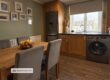 A contemporary kitchen equipped with a built-in electric double oven and a four-ring gas hob. Additional storage is thoughtfully provided by an under-stairs cupboard, and there is direct access to the rear patio and garden, ideal for indoor-outdoor living.