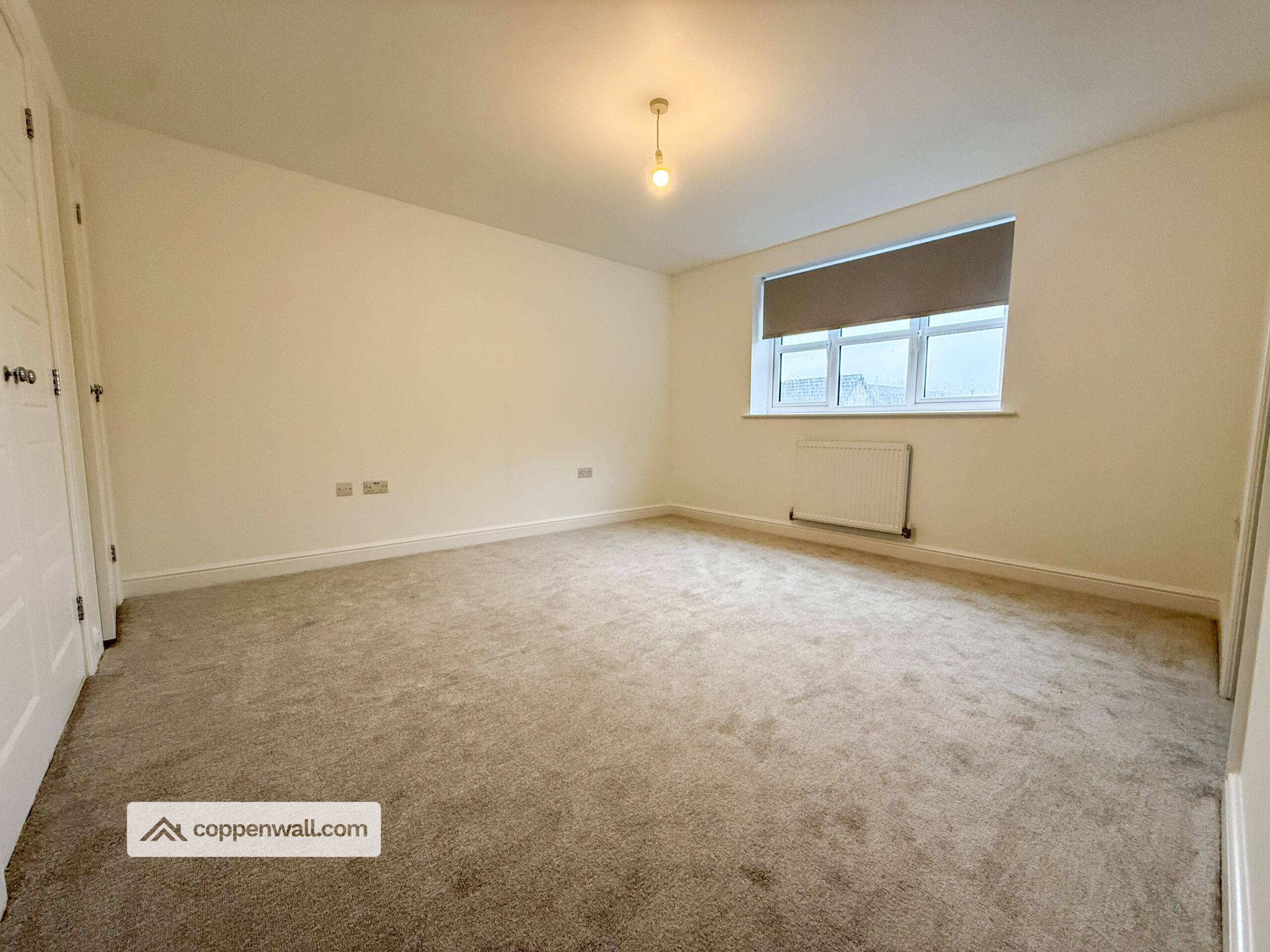 A well-proportioned double bedroom featuring a UPVC double-glazed window, central heating radiator, and fitted wardrobe.