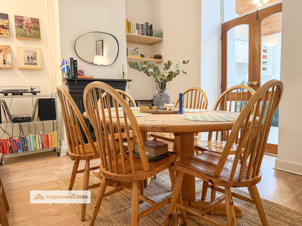 Cosy dining area with double doors that lead you into the kitchen.