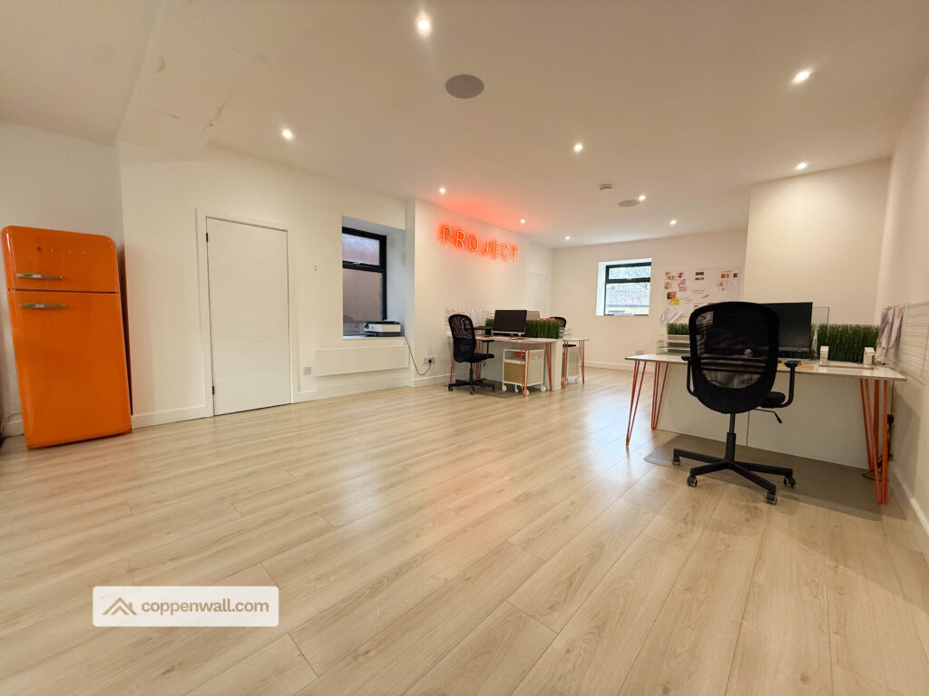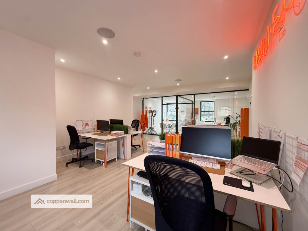 The office is shared with only one other person, who operates from a separate private office and from a different country the majority of the time, ensuring privacy, minimal disruption and a calm, focused working environment. The main office area is fully set up with four plug-and-play workstations, allowing you to move in and start work immediately, with additional space available to add more desks as your business grows.