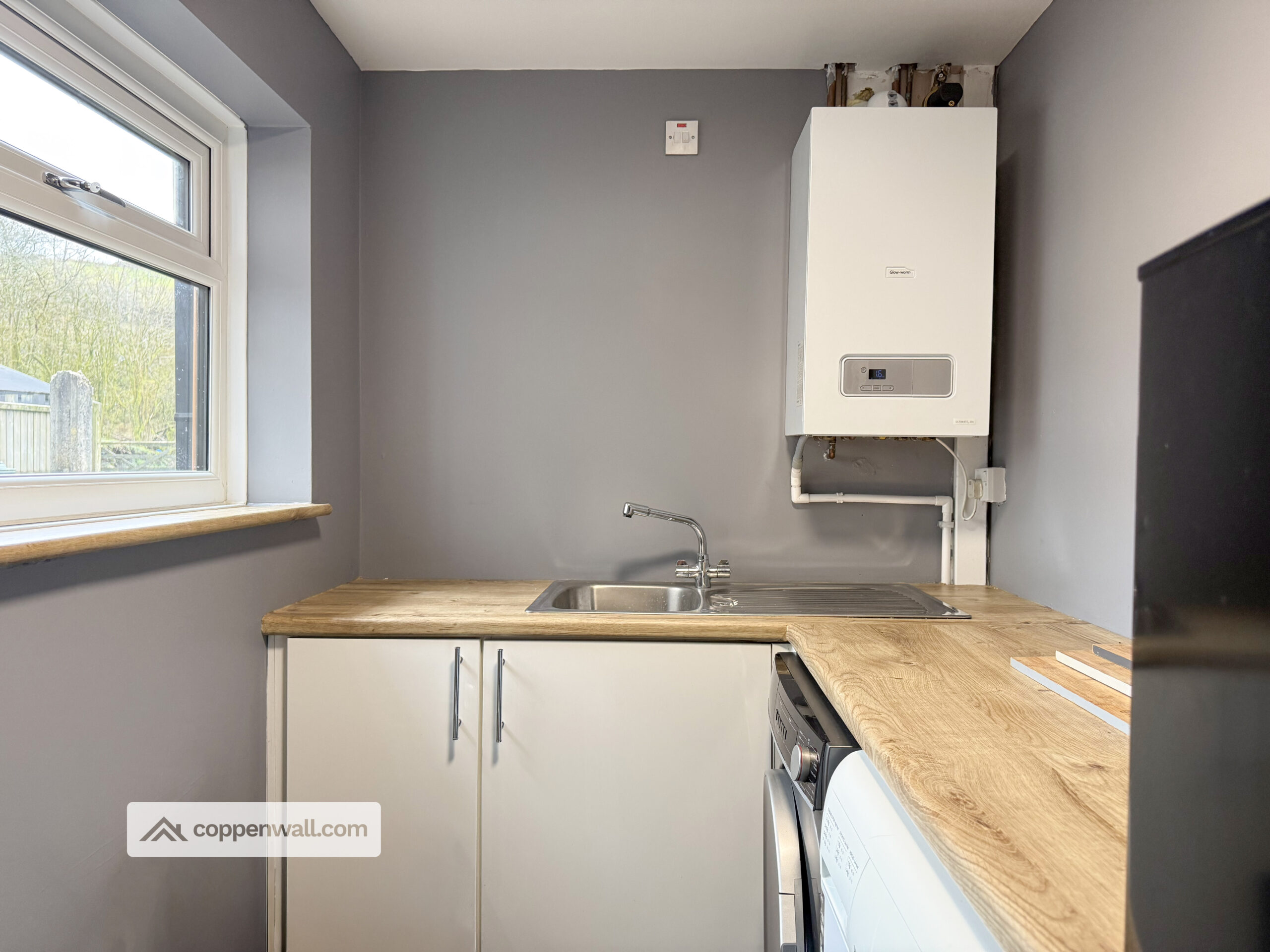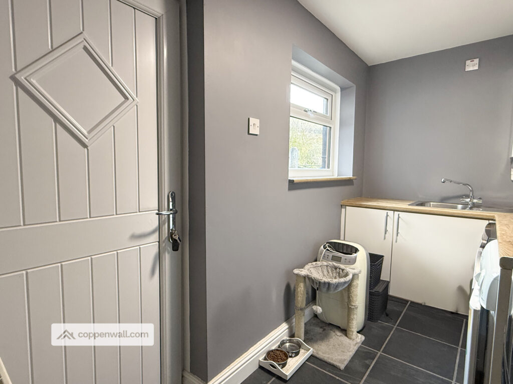 Equipped with plumbing for a washing machine and space for a tumble dryer, this useful area efficiently houses the recently serviced two-year-old combi boiler.