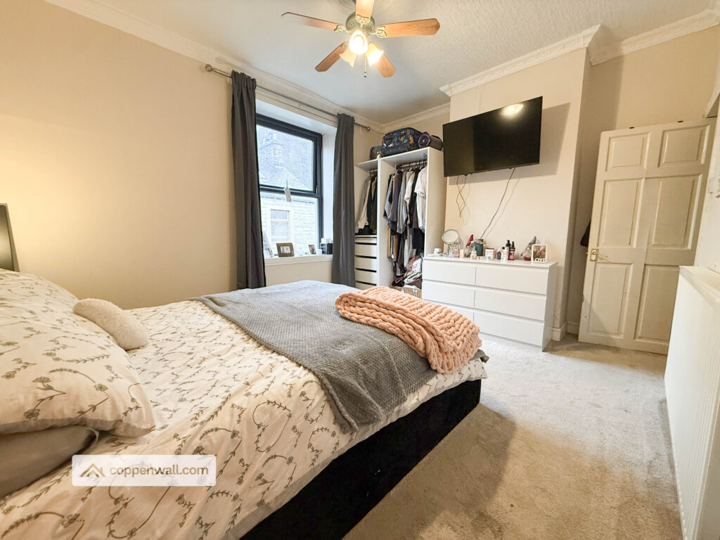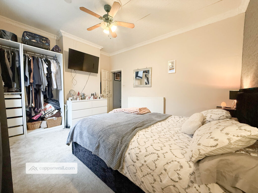 A generous double bedroom beautifully presented with feature wall décor and ample space for wardrobes and bedroom furniture. A bright and comfortable retreat.