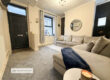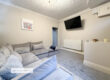 A stylish and inviting main reception room featuring modern décor, feature wall panelling and a contemporary colour scheme. The space comfortably accommodates a large sofa suite and additional furniture, creating a warm and cosy yet spacious living area. A large front-facing window allows for plenty of natural light.