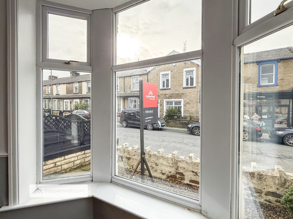 A generously sized lounge, centred around a cosy gas fire, complemented by a bright bay window flooding the space with natural light.