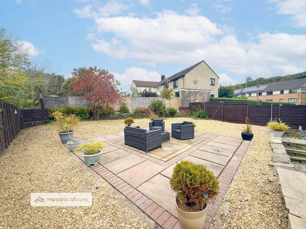 REAR GARDEN – Extra Large Generous, low-maintenance space landscaped with decorative stone and an Indian-stone patio forming a central entertaining area ideal for family BBQs and summer evenings. Well screened and not overlooked to the rear.
