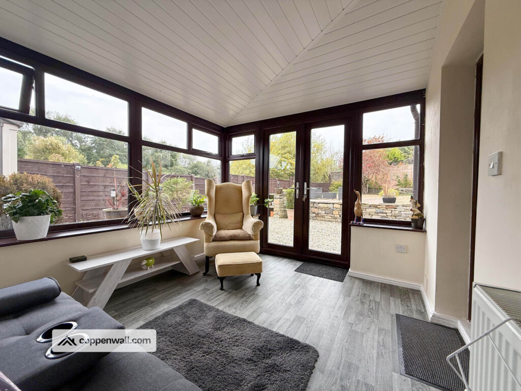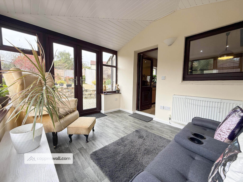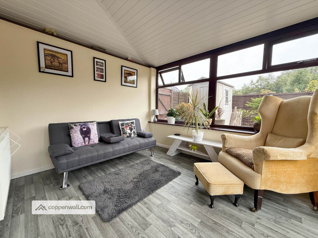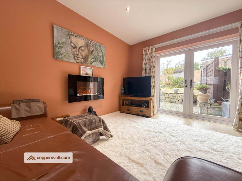 Versatile second reception with UPVC glazing and garden views ideal as a sitting room, playroom, or home office with direct access to the patio and landscaped, low-maintenance rear garden.