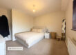 Spacious double bedroom with a broad window framing leafy rear aspects; comfortably fits a king-size bed and additional furniture.
