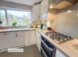 A contemporary family kitchen with a range of modern wall and base units with complementary work-surfaces, 1 ½ Belfast sink bowl unit, integrated oven, built in dishwasher, space for freestanding fridge/freezer, 4 gas hob with extractor hood overhead, plumbing for automatic washing machine, storage cupboard, solid oak stable door, partially tiled walls, fully tiled floors, and spotlit ceiling.