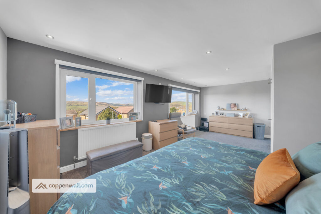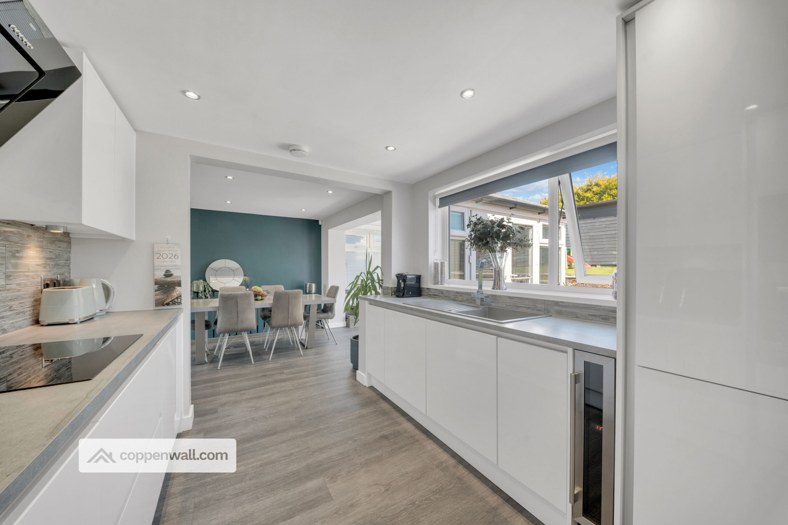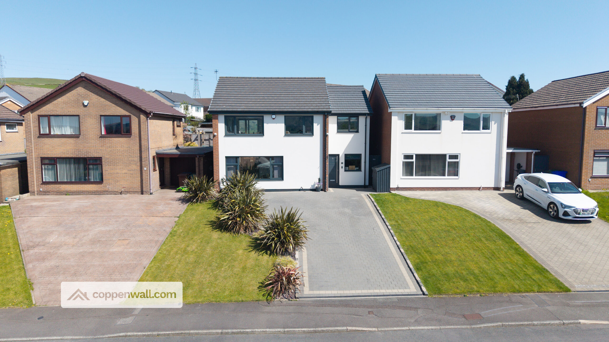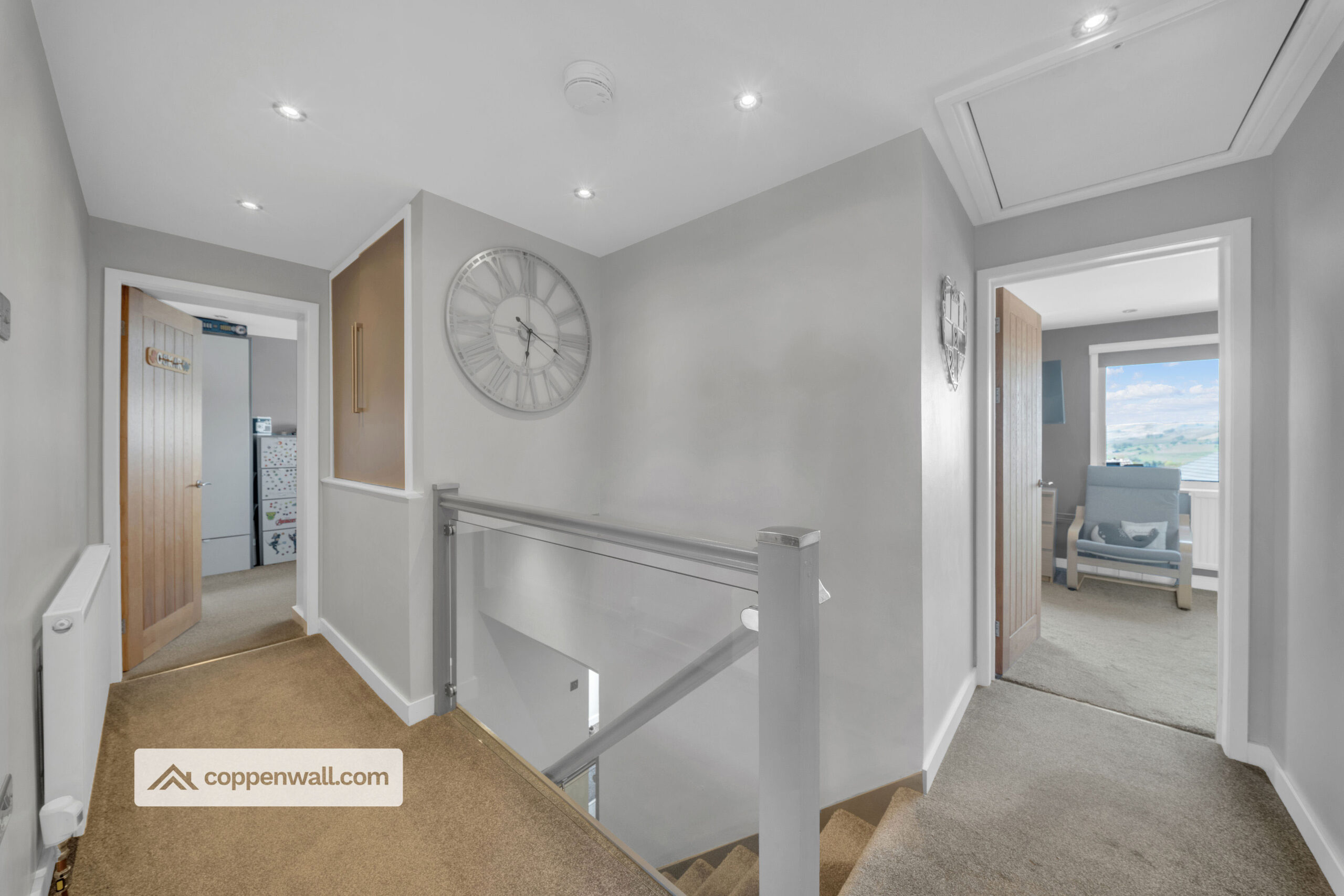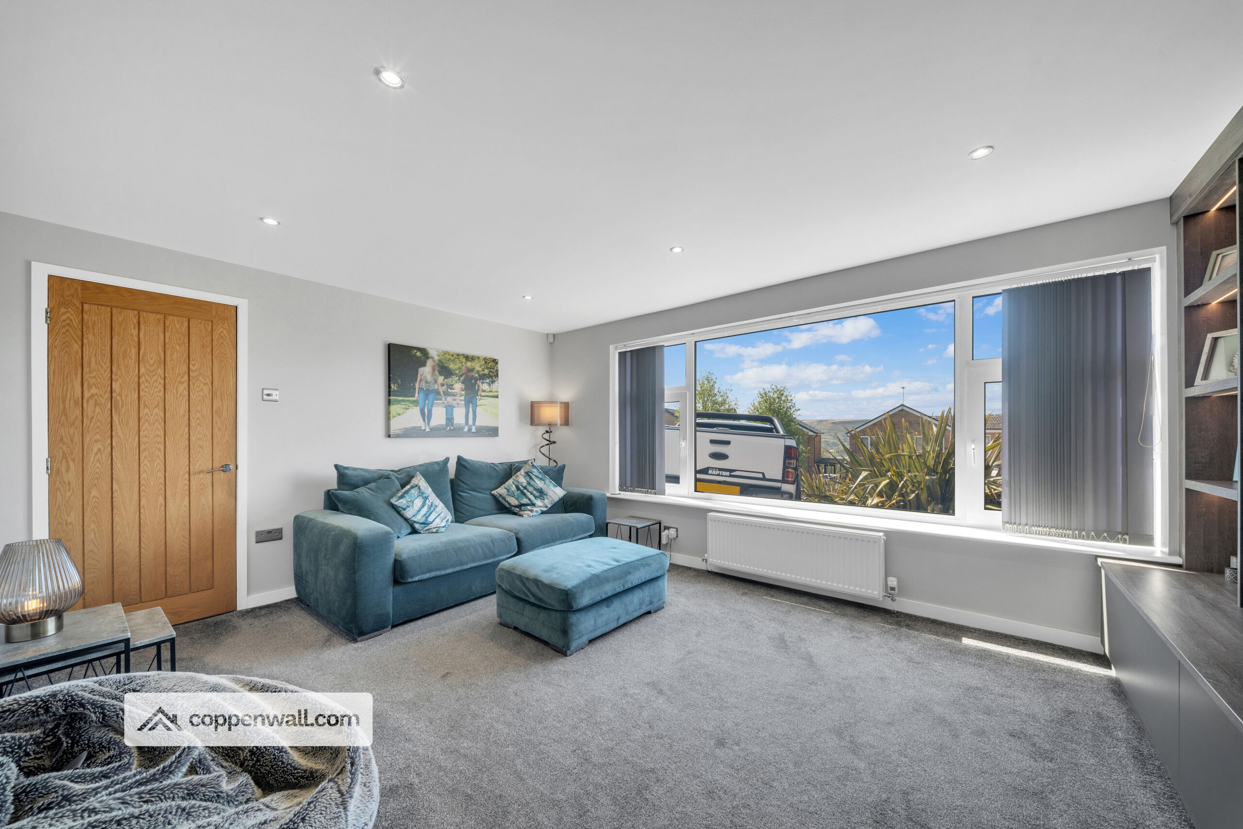 A superb, extended detached family home positioned in an elevated setting with far-reaching panoramic views. This versatile property offers spacious and flexible accommodation, currently arranged as three bedrooms but the ground floor has a bedroom currently set up as a studio, alongside multiple reception areas ideal for modern family living and home working.
